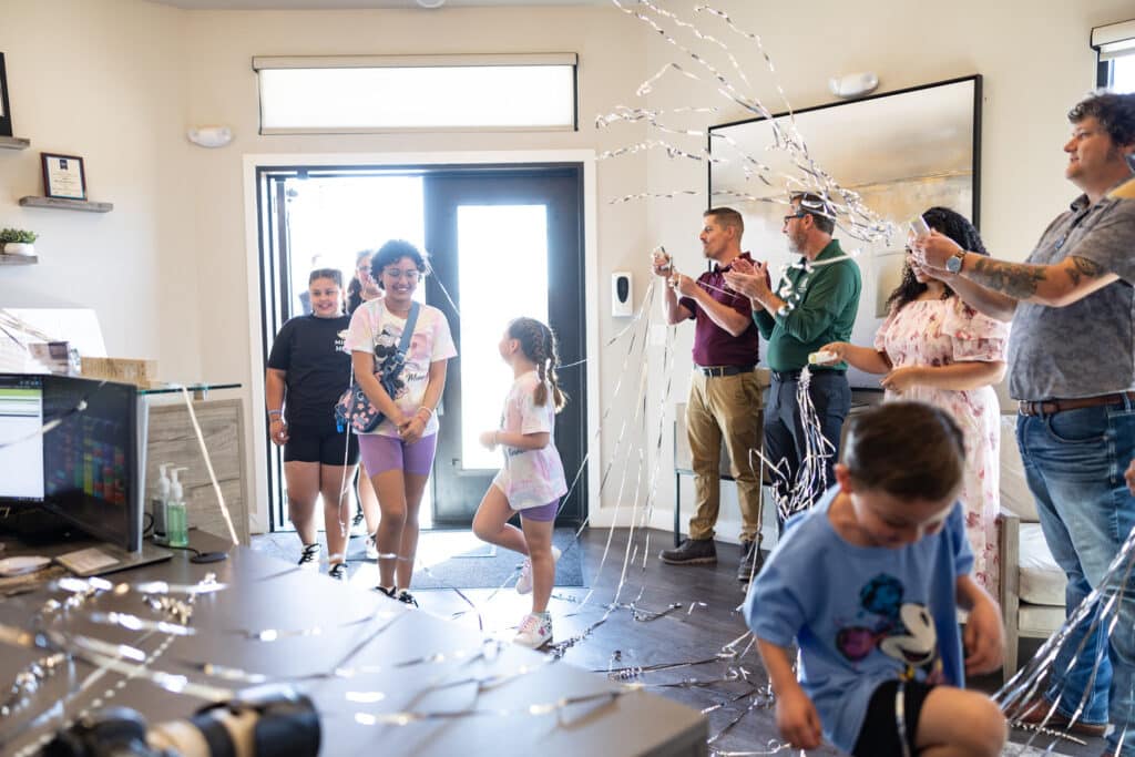 The Wish Celebration took place during a Friday lunch, allowing team members and their families to participate. Texas Roadhouse, Jubileen’s favorite restaurant, catered the meal. Dessert was confetti bundtinis from Nothing Bundt Cakes, Jubileen’s favorite sweet treat.