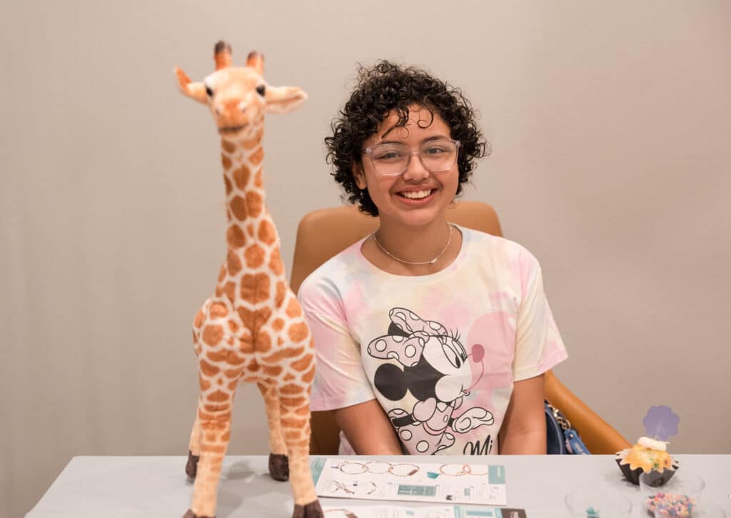 Ty presented Jubileen with a giant stuffed giraffe, her favorite animal. He also transformed a meeting room into a bracelet-making station where she and her sisters made custom bracelets to wear on their upcoming Disney trip. To help her capture vacation memories, she received a Polaroid camera and journaling kit.