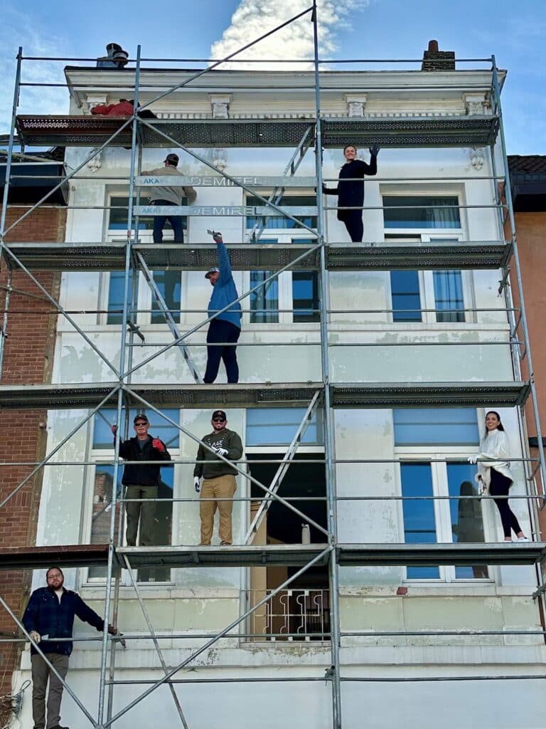 The group served with SportQuest at BijbelHuis (the Bible House), nestled in a predominantly Muslim neighborhood in Antwerp. One of their main projects was painting the outside of the building – something that turned out to be much more difficult, and far more meaningful, than expected. The scaffolding was high, the paint chipped and stubborn, and the hours long. But Shannon, true to her fearless nature, climbed to the top tier and tackled it without hesitation. “She was up there getting it DONE,” Holly laughs. “It was so neat to see her sense of accomplishment as she served.”